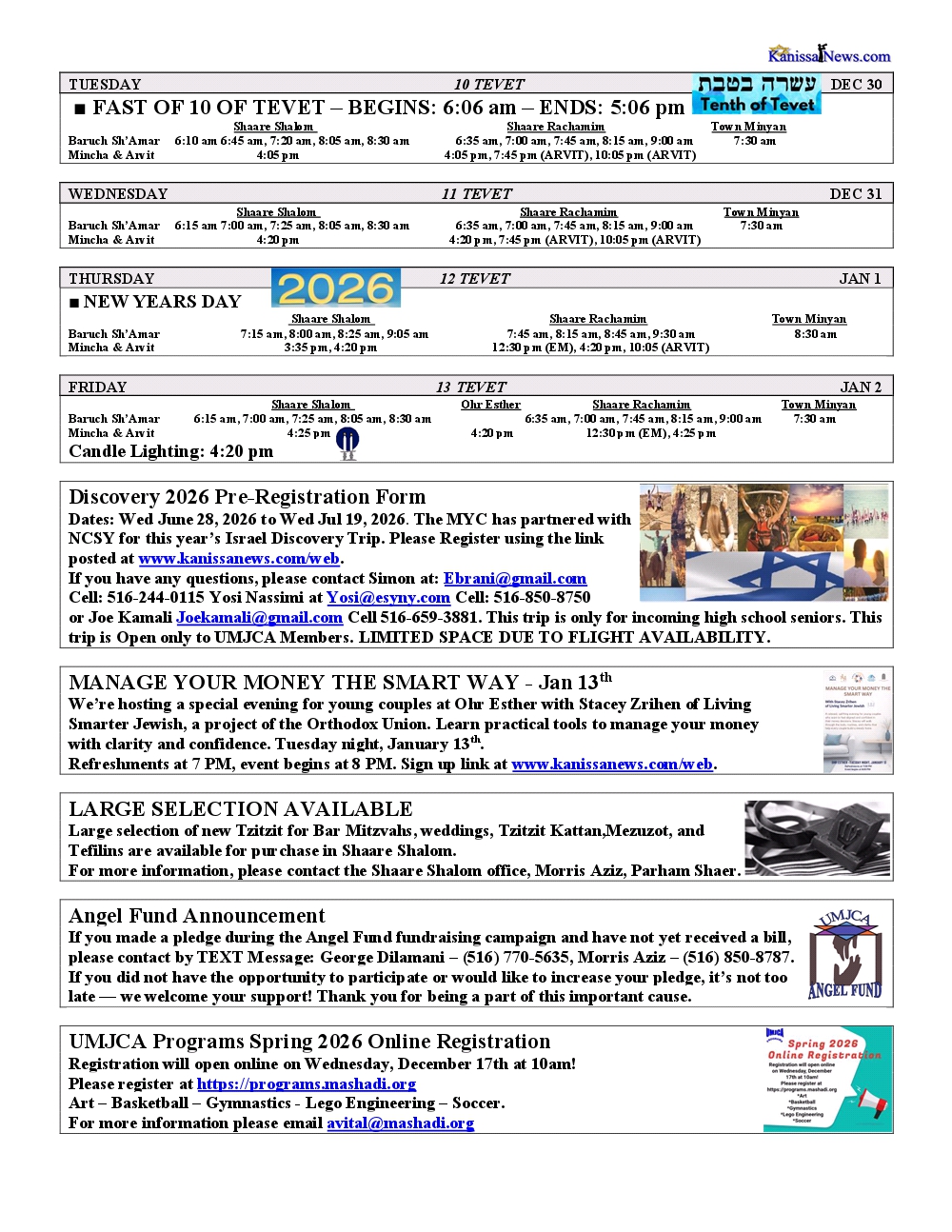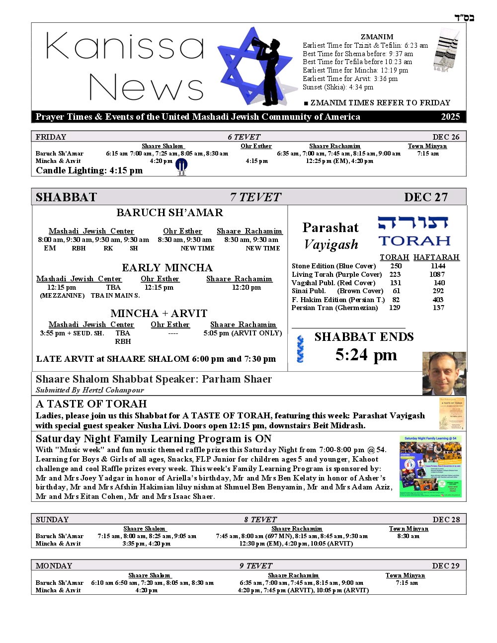 - No Shiras were reported at Shaare Shalom