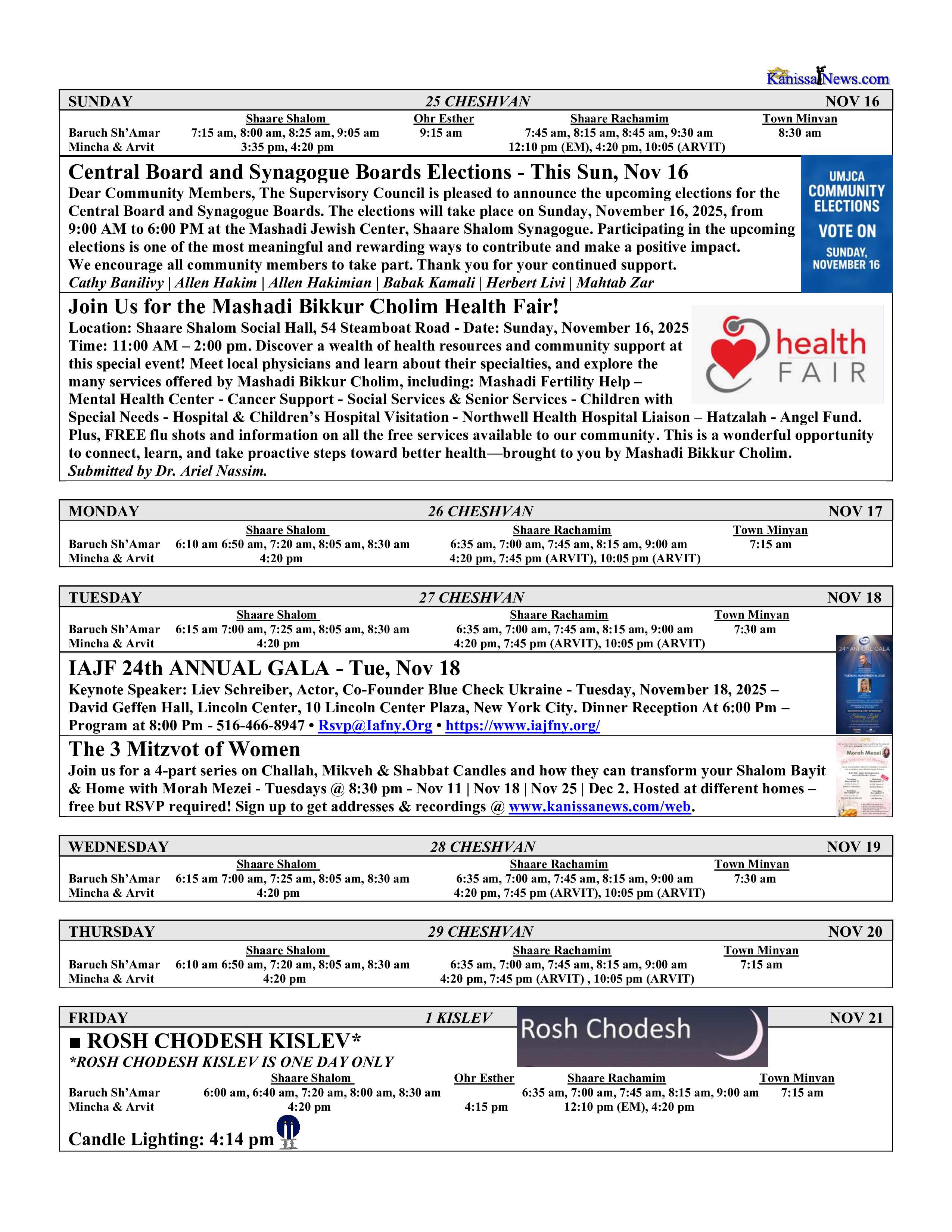 - No Shiras were reported at Shaare Rachamim