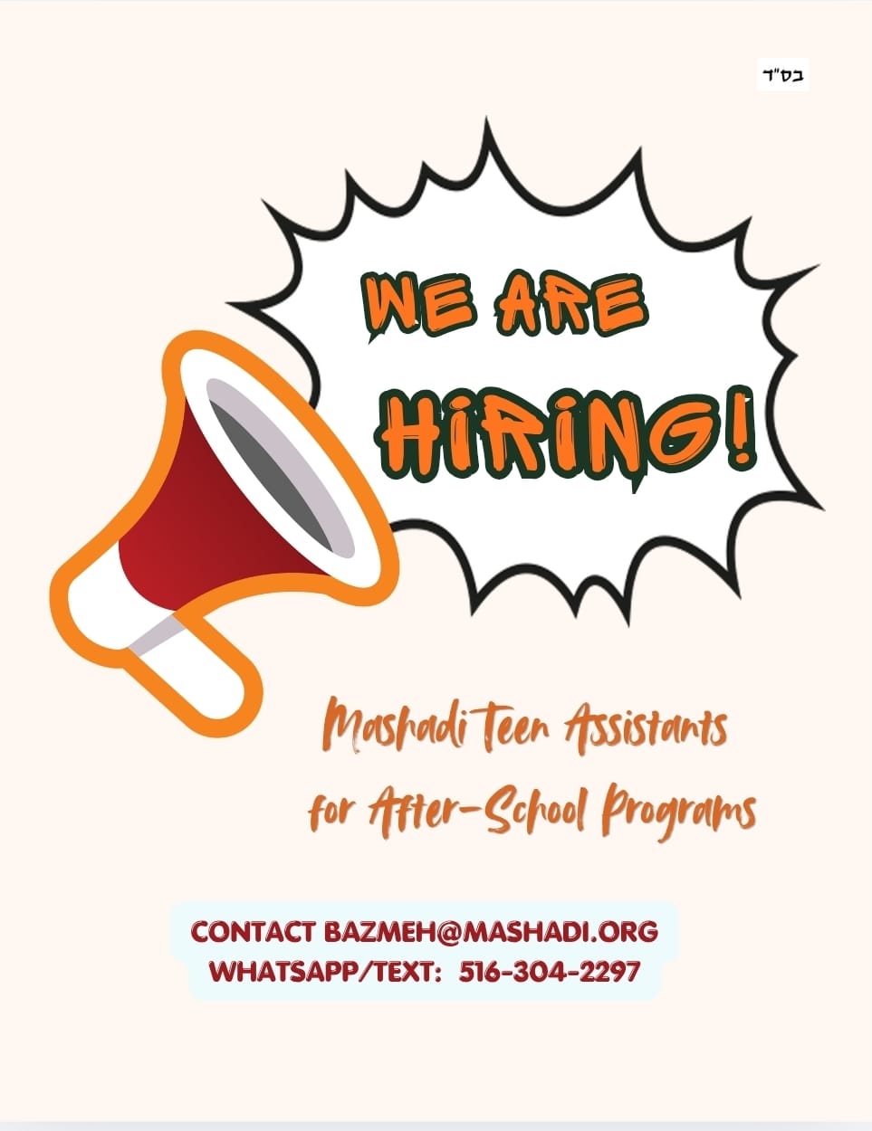 UMJCA Programming HIRING UMJCA Programming is looking for responsible, dedicated, and caring teens to assist in our children's programming this spring, and beyond. Please reach out to bazehm@mashadi.org or WhatsApp to (516) 304-2297. CLICK HERE FOR FLYER AND MORE INFO