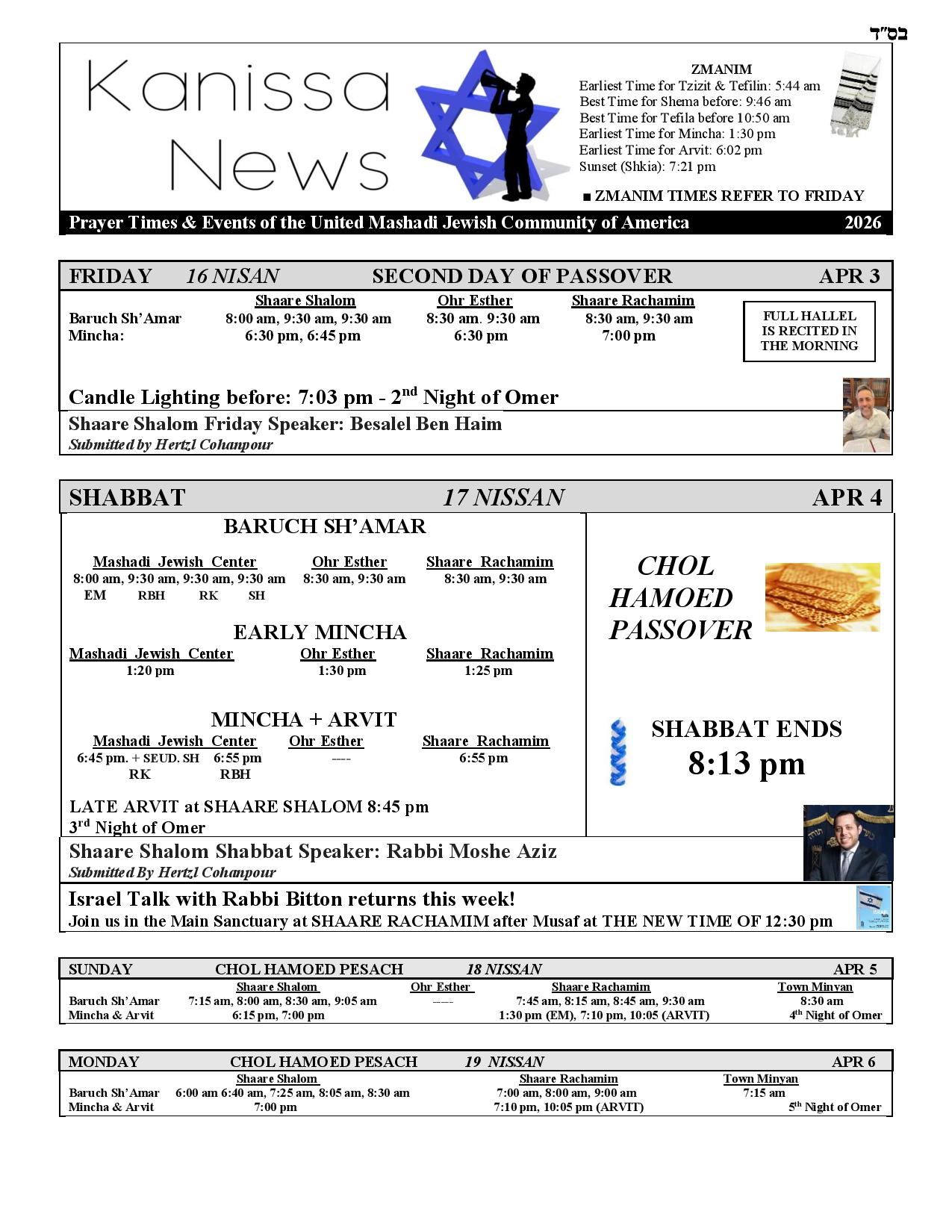 If you would like your Celebration and Picture listed in Shira News or Shalom Week, please email to