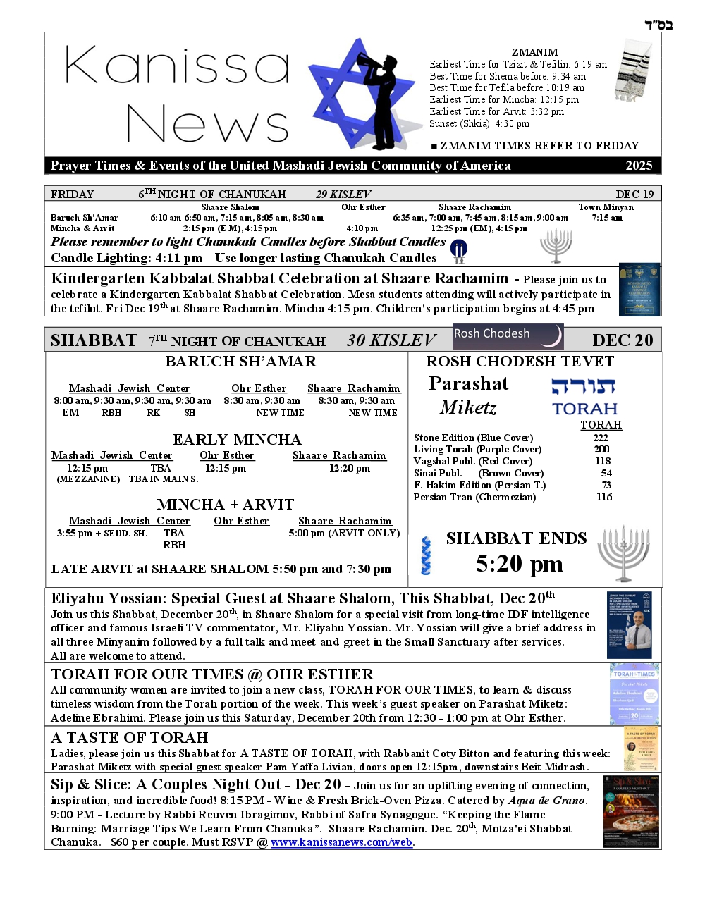 - Celebrating the Birth of the Newborn Baby Girl, born to Julia and Yonathan Livian (Social Hall Minyan)