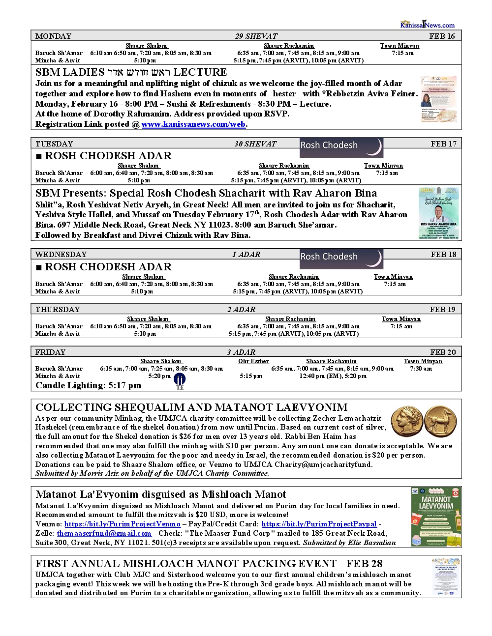 - No Shiras were reported at Shaare Shalom