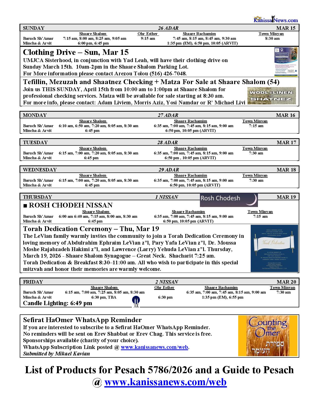 - No Shiras were reported at Ohr Esther