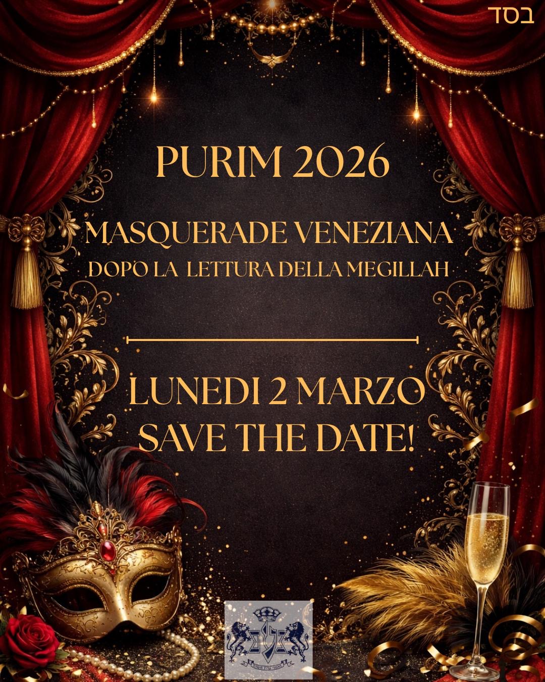 Si informa la gentile Kehillah che, anche quest’anno, presso il Salone del Tempio Noam, si festeggerà Purim, dopo la Lettura della Meghillah di Lunedì sera 02 Marzo, con la “MASQUERADE VENEZIANA”. Maggiori dettagli vi verranno forniti più avanti. (Locandina in allegato).
