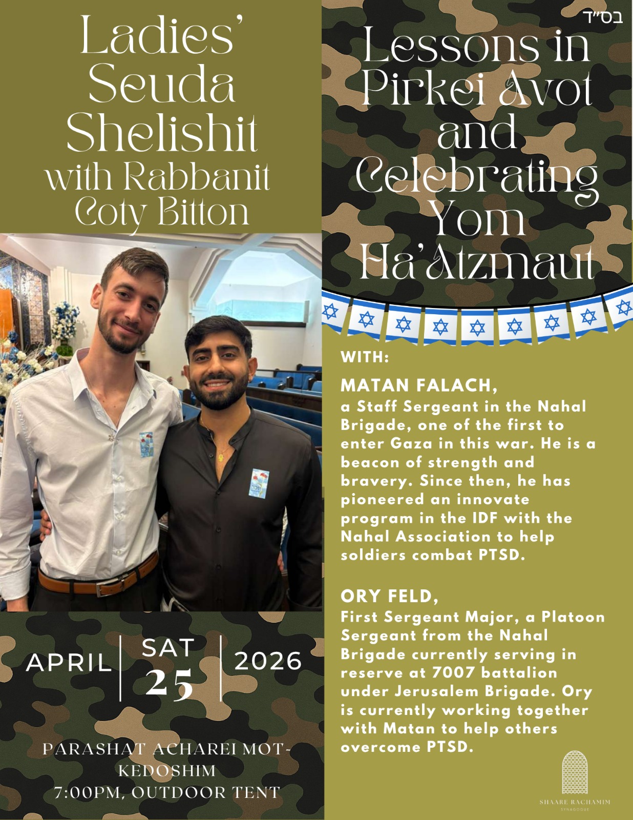 - No Shiras were reported at Shaare Shalom