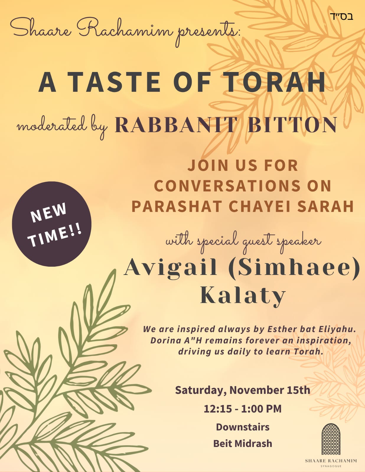 - Celebrating the Birth of the Baby Boy, born to Natali and Shira Dr. Joseph Yehounatan (Babai) (Main Sanctuary)